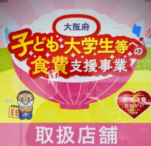 大阪府子ども・大学生食費支援事業に参加しております😊